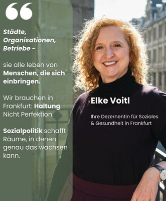 Hilfe könnte jetzt aus gänzlich unerwarteter Ecke kommen. Mit einer äußerst gelungenen Social Media-Kommunikationskampagne profiliert die Dezernentin für Soziales und Gesundheit, Elke Voitl von den Grünen, einen bemerkenswerten sozialpolitischen Ansatz: „Gute Sozialpolitik ist ein knallharter Standortfaktor für Frankfurt. Sie hilft nicht nur denen, die Hilfe brauchen. Sie sorgt für die soziale Balance in der Gesellschaft insgesamt. “